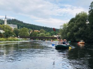 Wir hatten viel Spaß auf den Flößen. Diesmal fuhren wir die Moldau für 2 Tage und 2 Routen. Der erste von Vyšší Brod nach Náhořany.