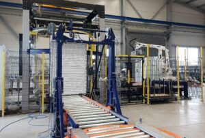 Inserting of pallet corners during wrapping by robots. |