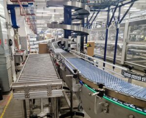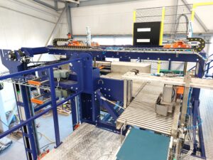 Dvě výkonné paletizace na dopravu kartonů pro českého zákazníka v lahvárenství.