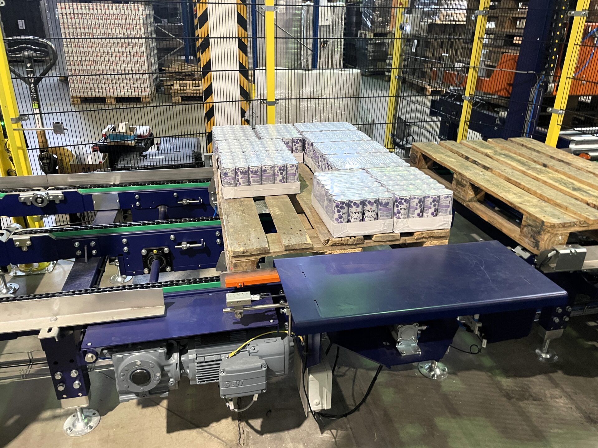 | Základní popis | Paletizace kartonů s plechovkami. Plechovky jsou vloženy do treje, následně obaleny smrštitelnou fólií. |