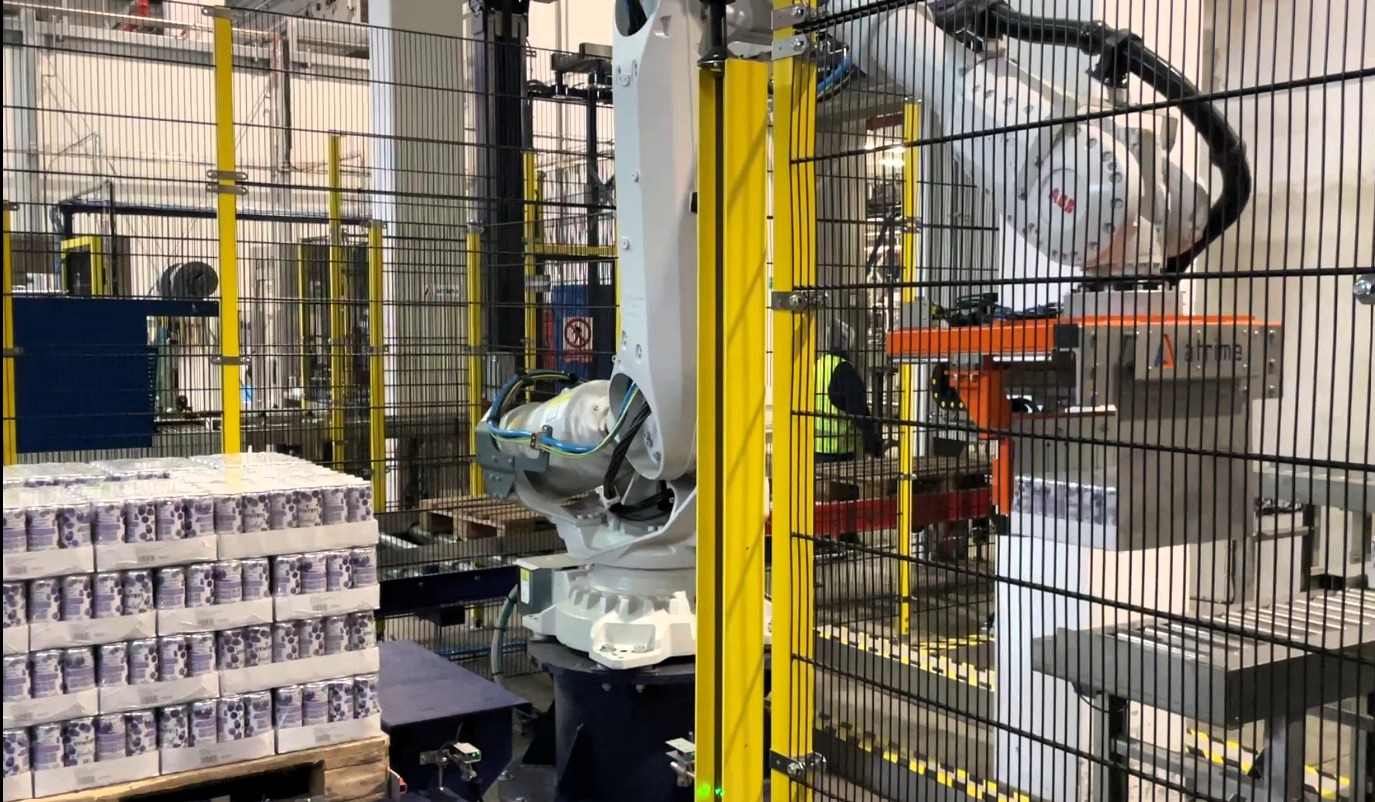 Výkonné řešení paletizace kartonů s plechovkami pro našeho českého zákazníka v nápojovém průmyslu. Výsledkem realizace firmy Atrima je 100% technologická účinnost paletizace, bezporuchový chod a bezpečnost práce.